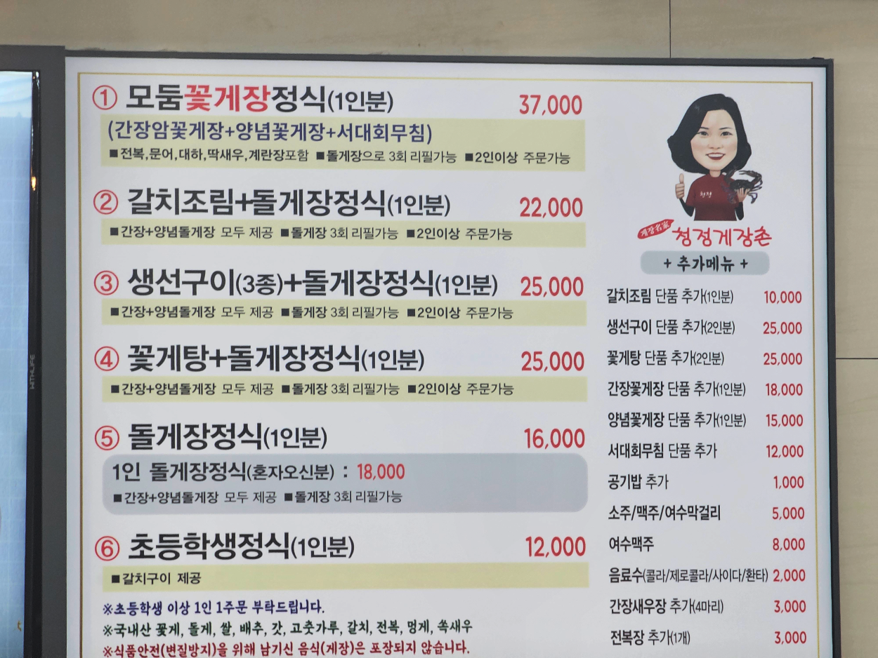 특히 청정게장촌은 별도의 휴무일 없이 1년 365일 문을 열고, 아침 7시의 이른 시간부터 저녁 9시까지 중간 휴식 시간 없이 운영되기 때문에, 여행 계획에 맞춰 언제든 편하게 들를 수 있다는 점이 큰 매력입니다.
